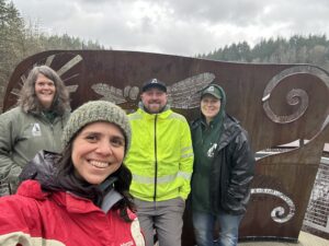Option 2. Take a picture of any of the metal artwork at the park. Examples are the mushroom sculpture, the plates along the trail or the duck blind at boardwalk.